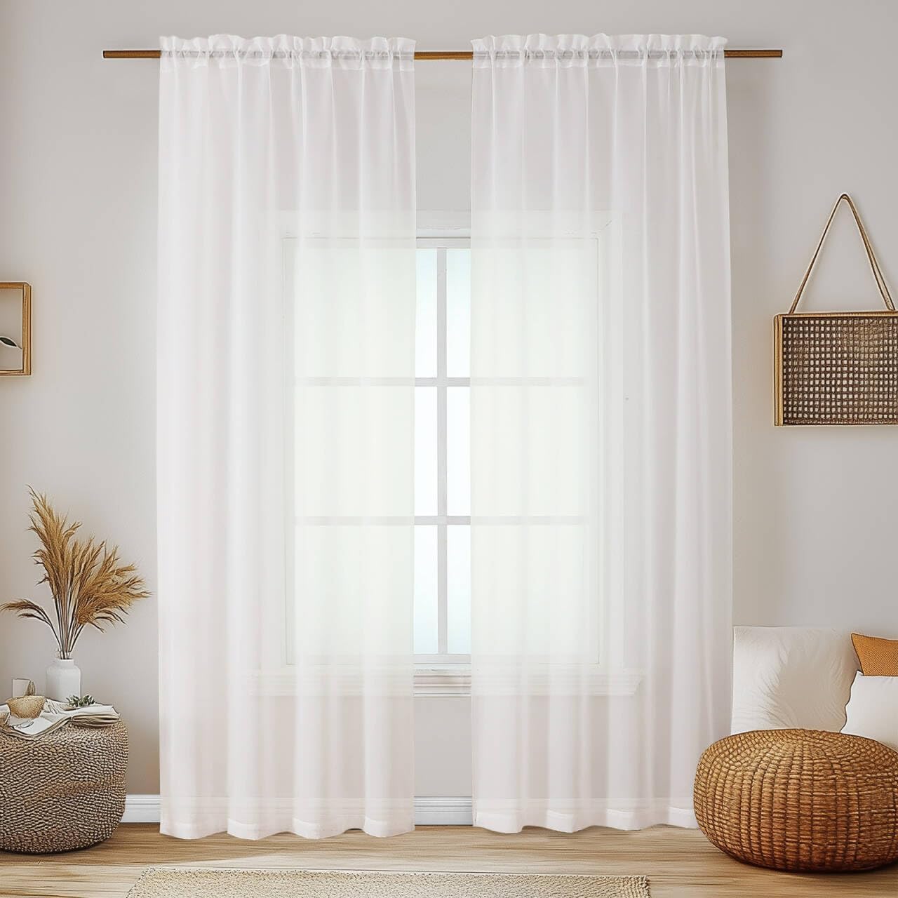 - Sheer Curtains: Our ivory sheer curtains fabric are made of high density yarn, so the curtains are durable and airy, allowing the outdoor air and sunlight to come through while protect your privacy, will liven up your indoor or outdoor spaces with a sense of airiness and breathable, also make the room air fresher